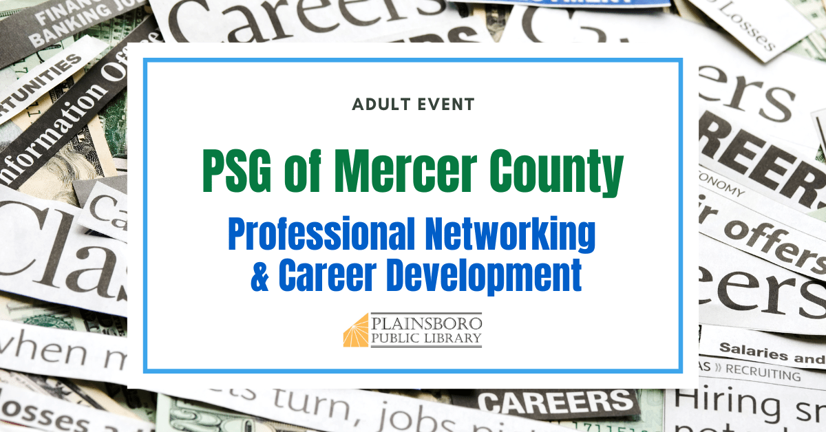 Plainsboro Public Library is pleased to partner with PSG (Professional Service Group) of Mercer County to support area residents who are in job search mode or are merely contemplating a move out of their current role.